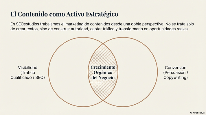 El contenido es la base del posicionamiento orgánico y uno de los principales activos estratégicos de cualquier negocio digital. En SEOestudios trabajamos el marketing de contenidos desde una doble perspectiva: visibilidad y conversión.