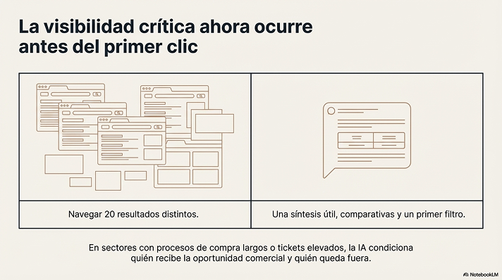 Cuando un usuario formula una consulta compleja, no siempre quiere navegar veinte resultados. Quiere una síntesis útil, comparativas, criterios y un primer filtro. Ese filtro cada vez ocurre más en interfaces conversacionales. Si tu empresa no está preparada para ser interpretada correctamente por esas plataformas, tu competencia ocupará ese espacio con más facilidad.