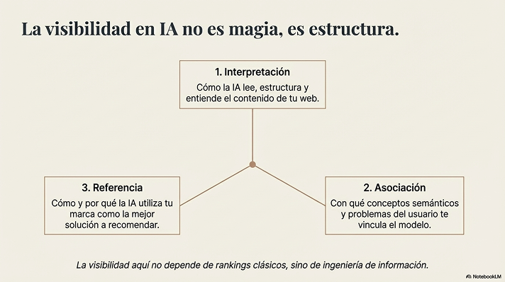 En ese punto, la visibilidad no depende de rankings clásicos, sino de cómo tu marca es interpretada, asociada y utilizada como referencia.